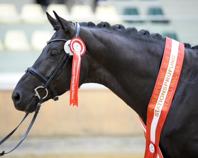 Donauschwarm vereint Typ, Bewegung und Interieur in ausgewogener Form. Sein korrektes Fundament, die harmonische Oberlinie und seine natürliche Versammlungsbereitschaft bieten hervorragende Voraussetzungen für eine positive Vererbung.
