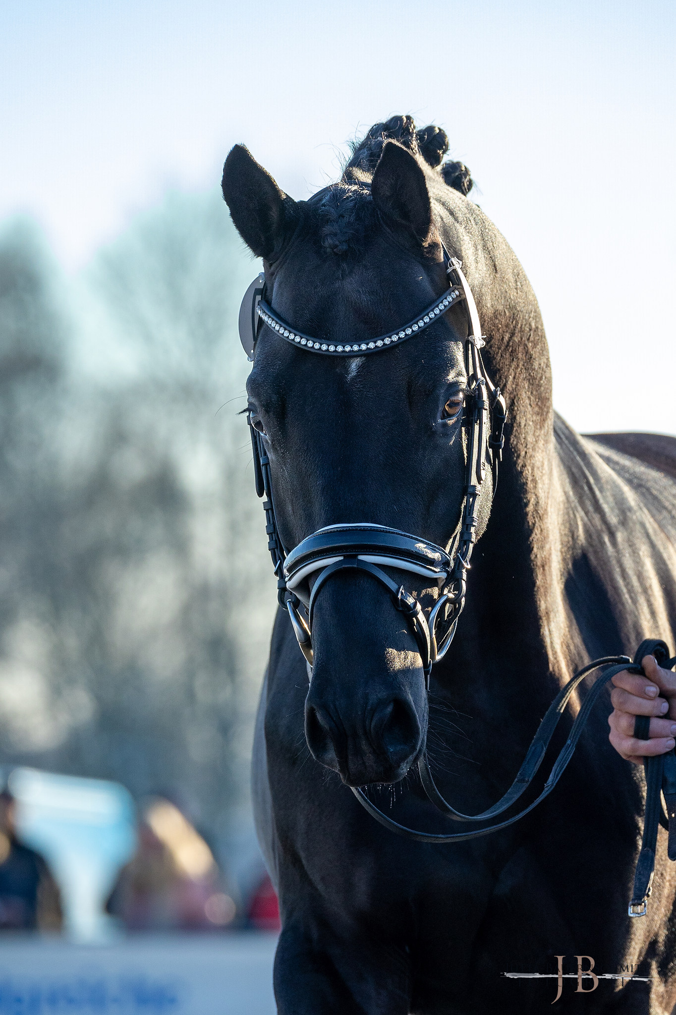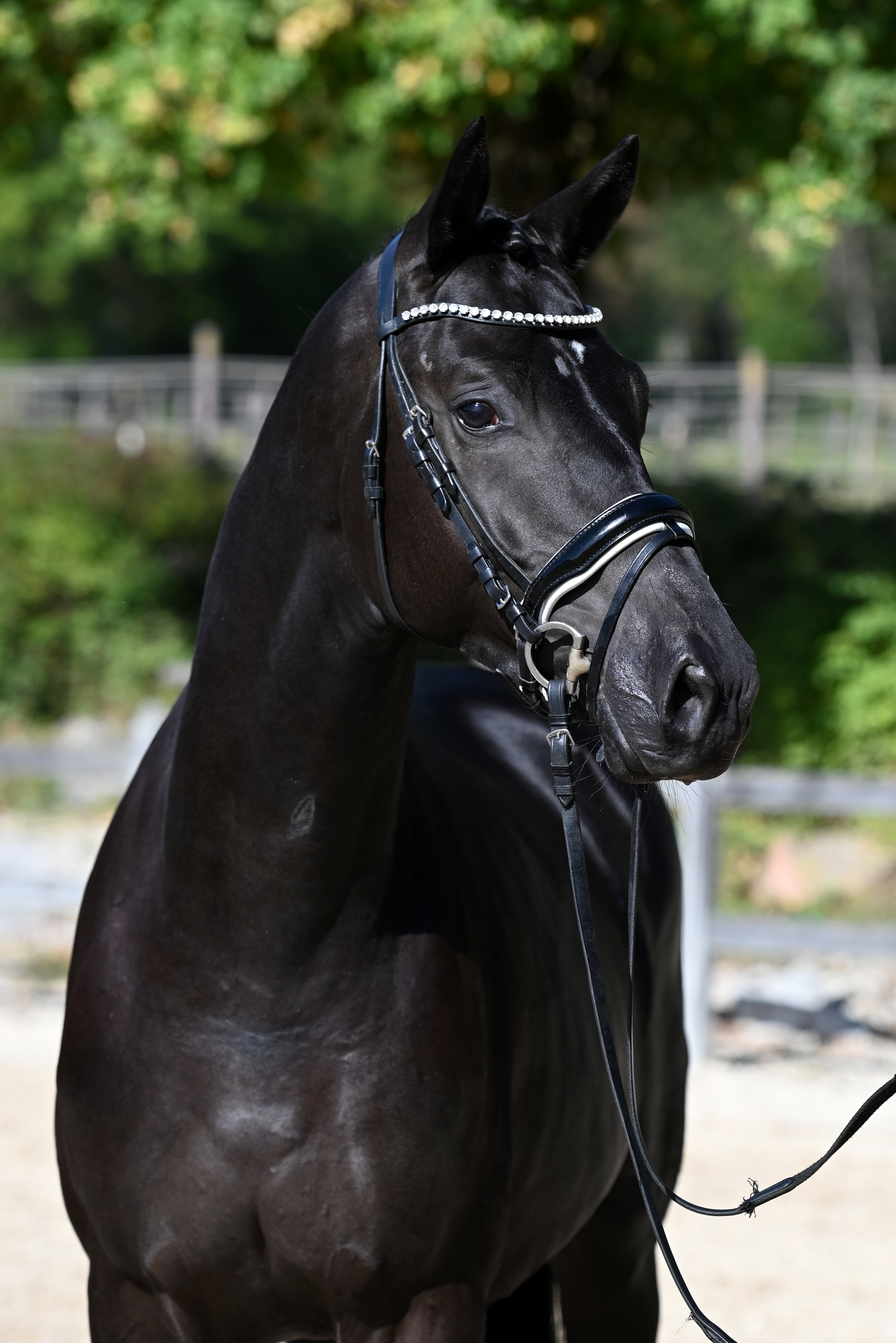 Donauschwarm ist ein Trakehnerhengst von außergewöhnlicher Ausstrahlung, der klassische Zuchtwerte mit moderner Dressurveranlagung vereint. Sein edler, trocken modellierter Kopf, der wache, intelligente Blick und seine harmonisch proportionierte Silhouette stehen beispielhaft für den typvollen Trakehner moderner Prägung. Er verkörpert Adel und Leichtigkeit, ohne dabei an Präsenz oder Substanz einzubüßen.