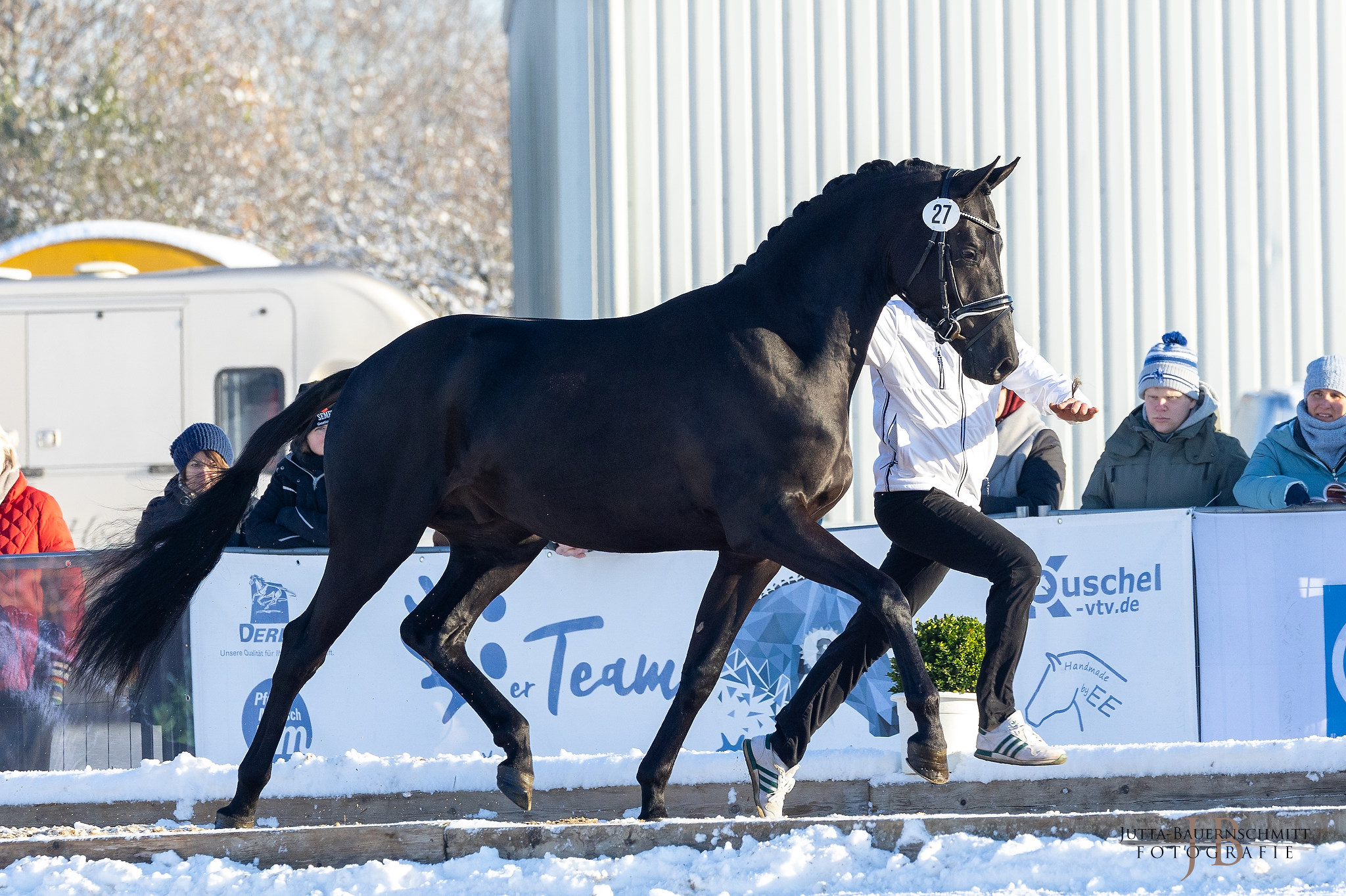 Donauschwarm vereint Typ, Bewegung und Interieur in ausgewogener Form. Sein korrektes Fundament, die harmonische Oberlinie und seine natürliche Versammlungsbereitschaft bieten hervorragende Voraussetzungen für eine positive Vererbung.